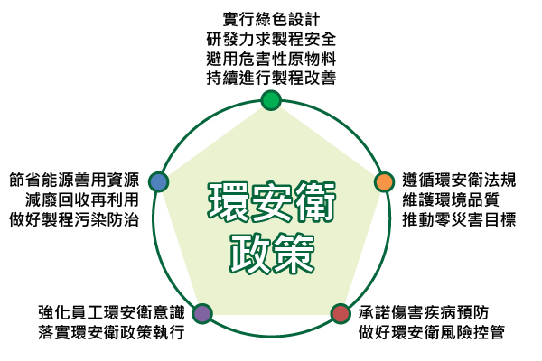 | 加強職業安全衛生管理 | 遵行職業安全衛生相關法規、工作守則,實施災害統計並進行調查分析暨進行相關改善措施 |